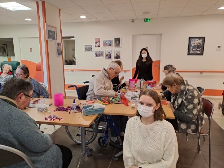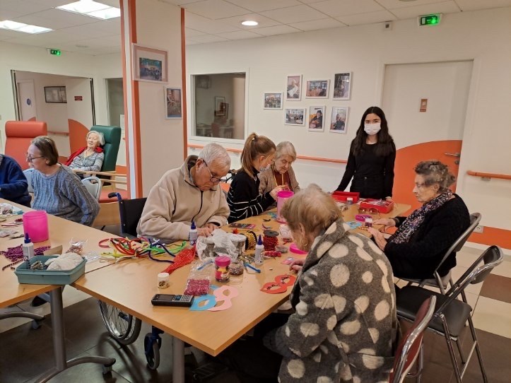 Deux élèves de 2de 8 sont allées rencontrer les résidents de l'Enclos Saint-Jean. Au programme : préparation du Carnaval en cette veille de Carême. La joie du "faire ensemble", la simplicité des échanges, l'atmosphère paisible... tous les éléments étaient rassemblés pour faire de cet après-midi un souvenir mémorable pour les jeunes et les moins jeunes ! Une belle expérience : oui, se mettre au service rend heureux :-)
